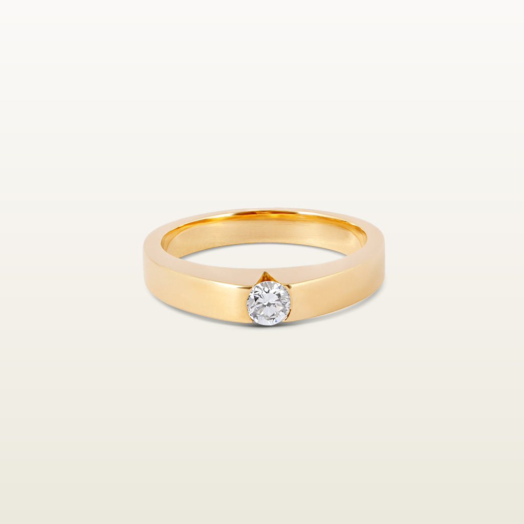 Anillo de compromiso Solitario, en oro amarillo 18 kt con un diamante natural corte Brillante Redondo (Round Brilliant Cut) de 0.16 ct.