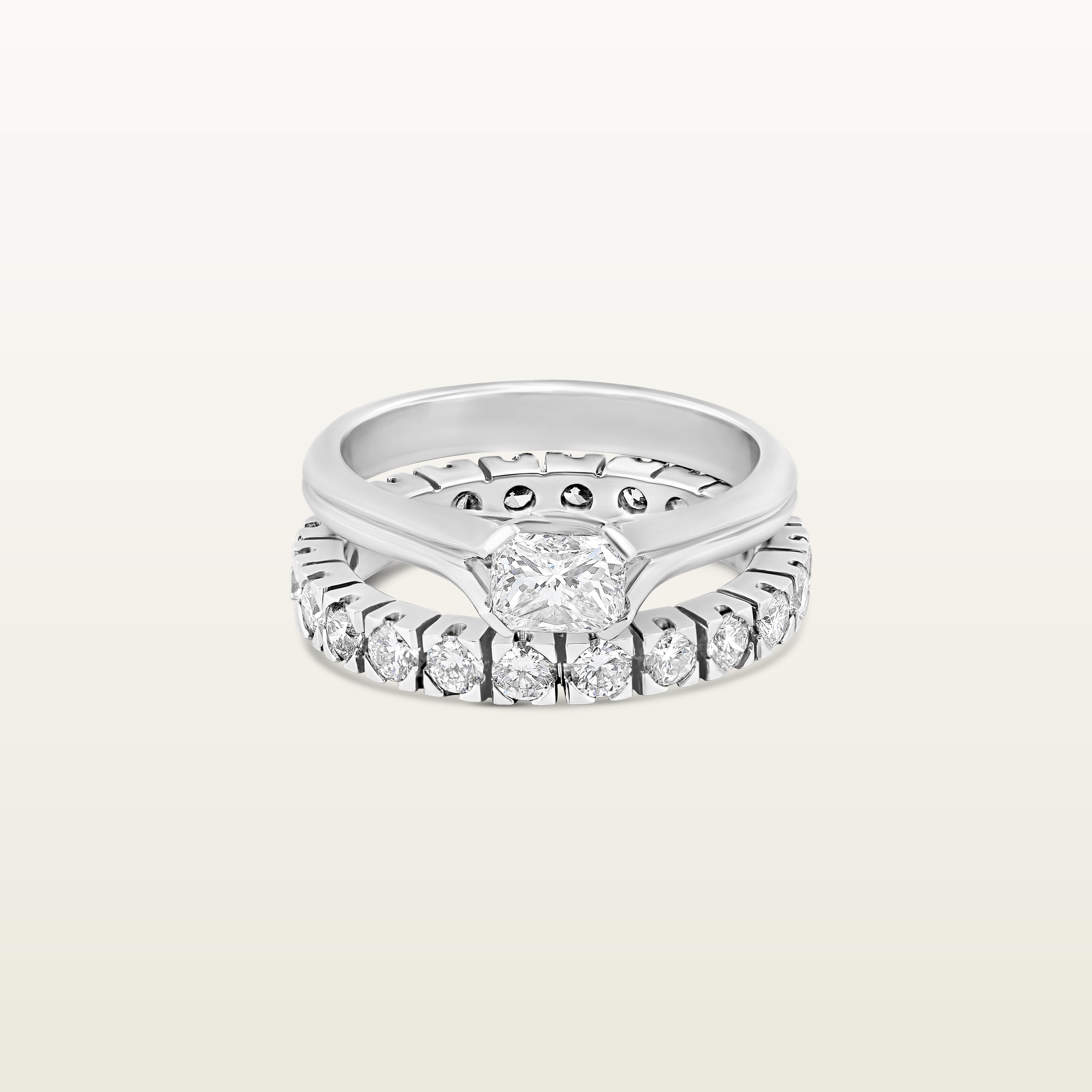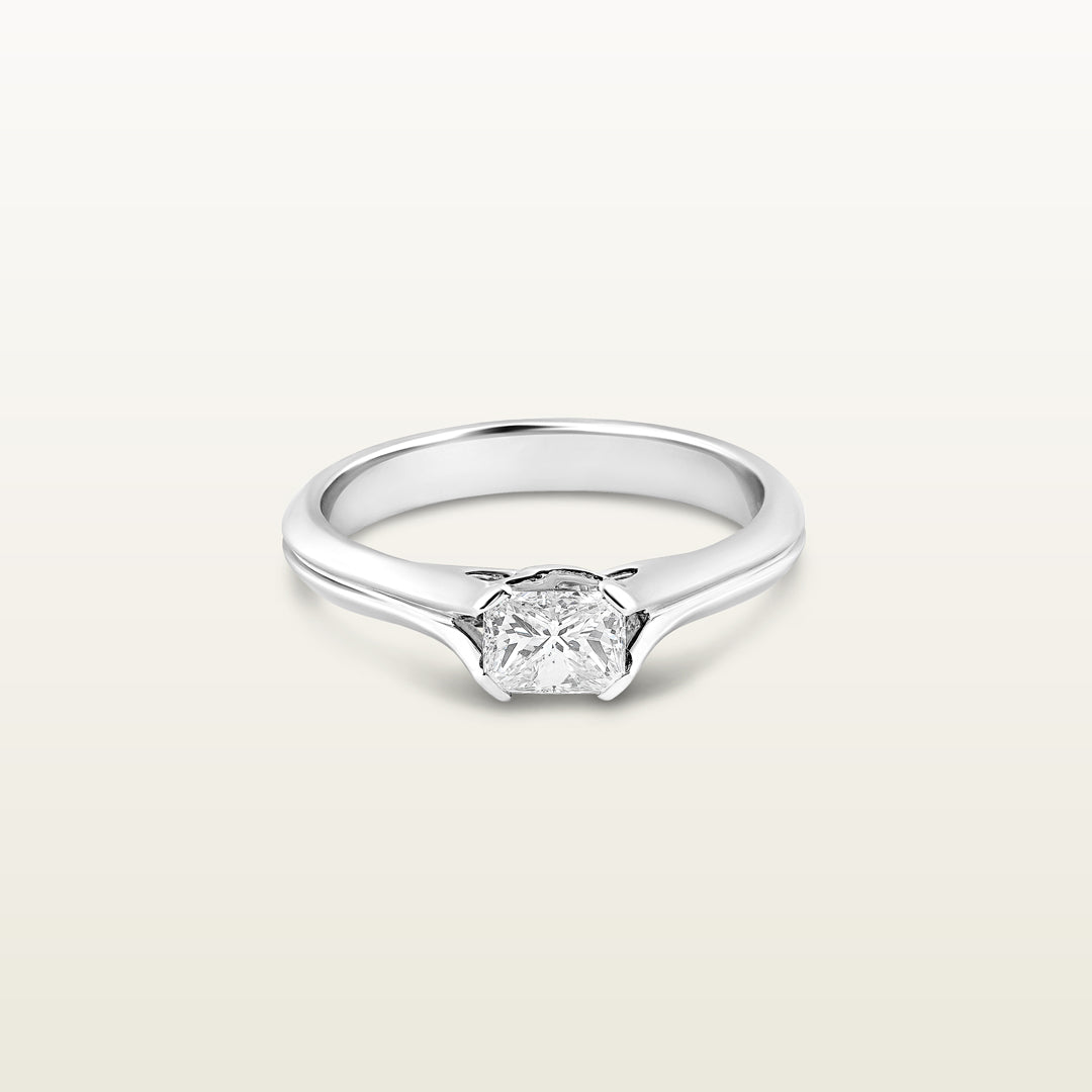 Anillo de compromiso Solitario, en oro blanco 18 kt con un diamante natural corte Radiante (Radiant Cut) de 0.45 ct.