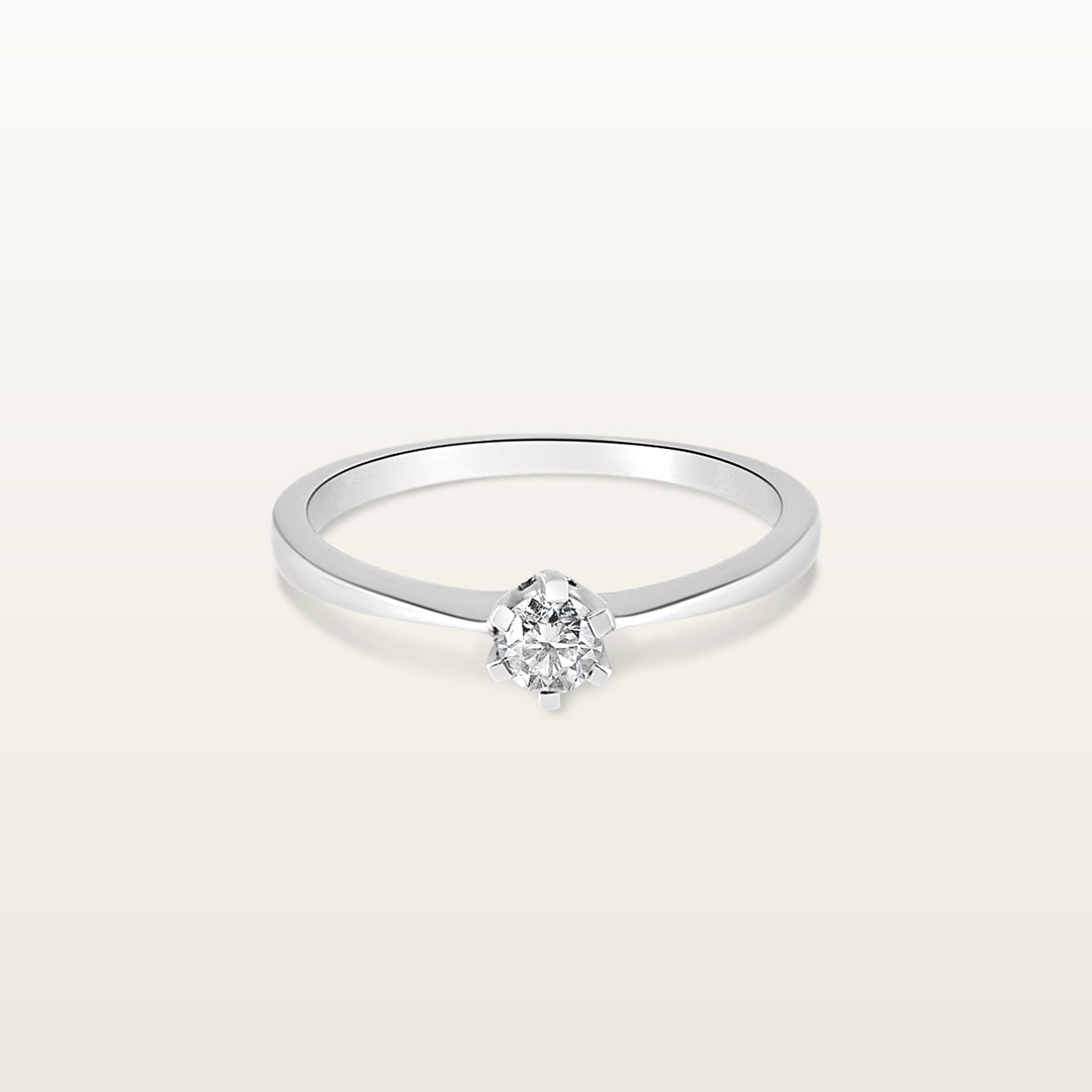 Anillo de compromiso Solitario, en oro blanco 18 Kt con un diamante natural corte Brillante Redondo (Round Brilliant Cut) de 0.23 ct