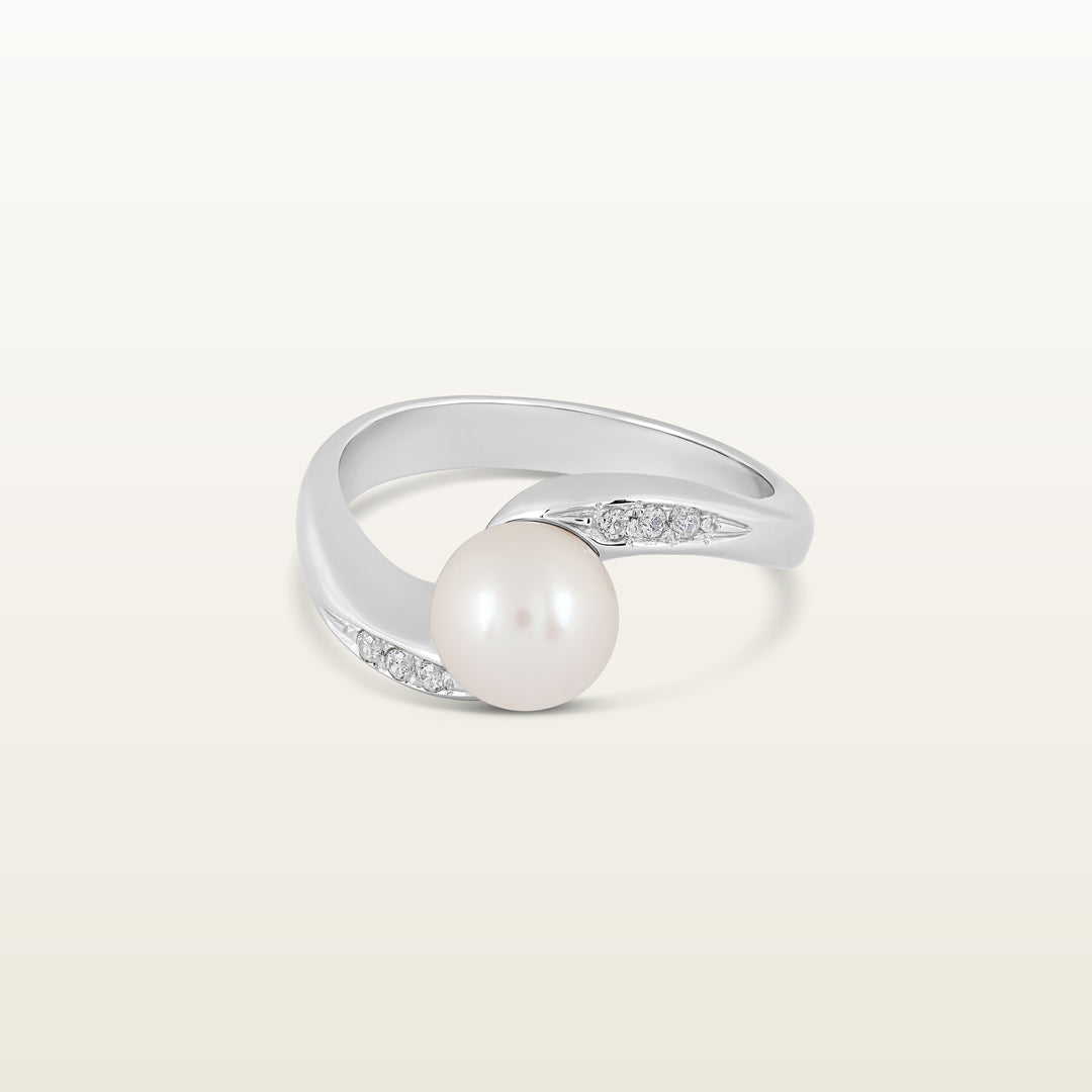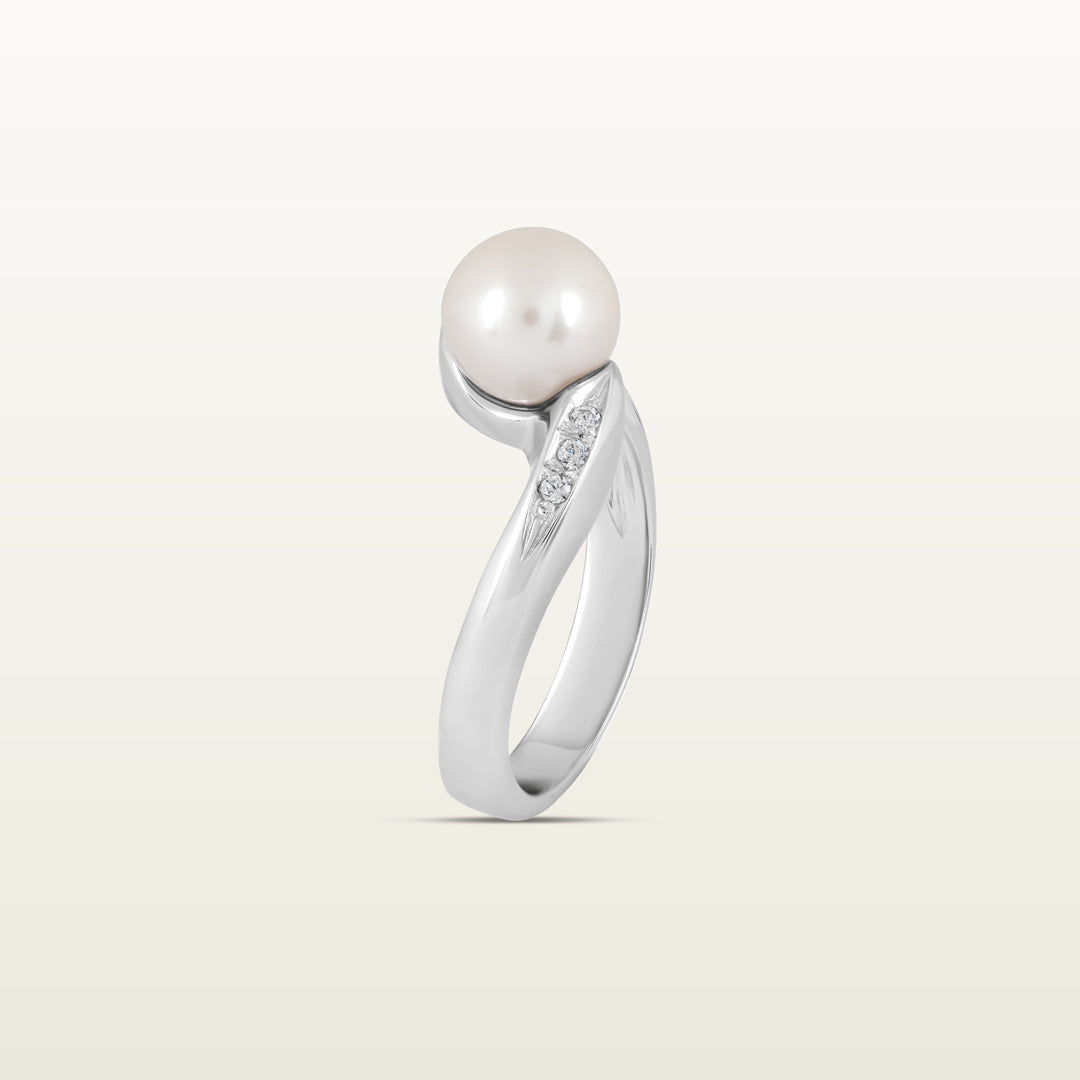 Osaka Anillo en oro blanco 18Kt con perla cultivada y circones
