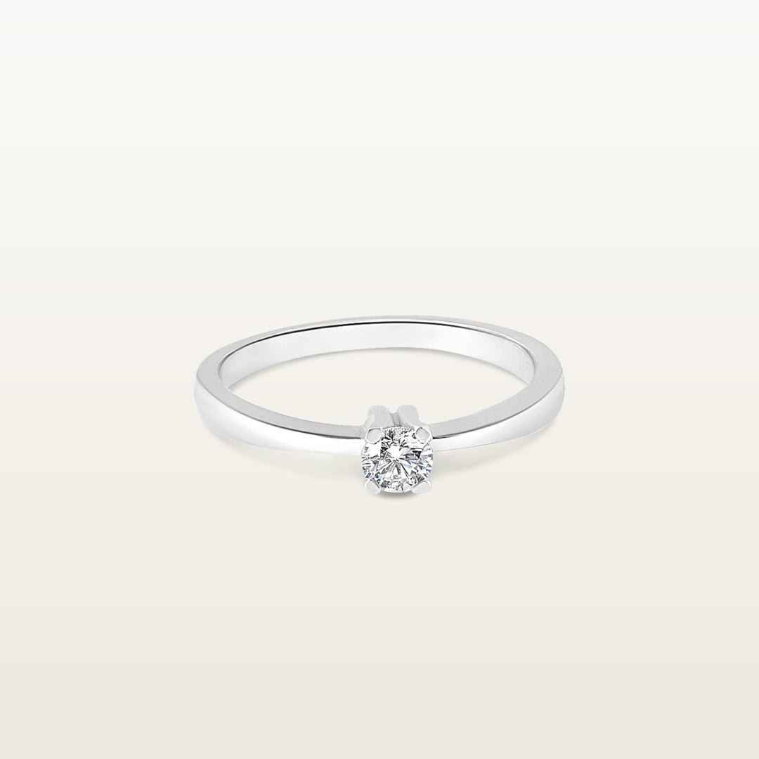 Anillo de compromiso Solitario, en oro blanco 18 kt con un diamante natural corte Brillante Redondo (Round Brilliant Cut) de 0.17 ct.