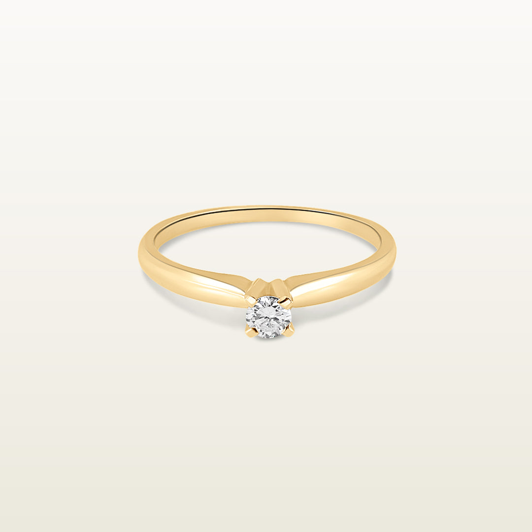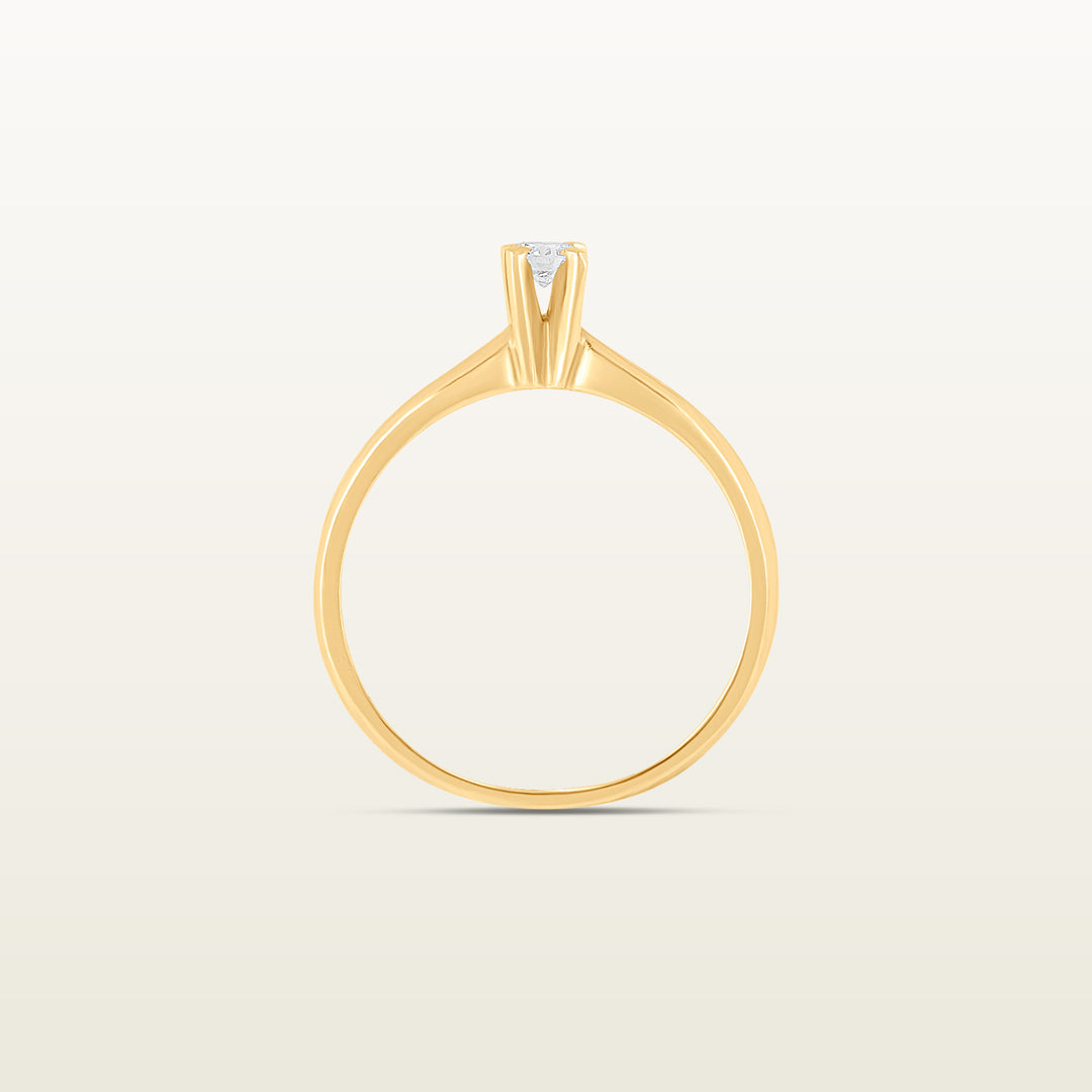 Anillo de compromiso Solitario, en oro amarillo 18 kt con un diamante natural corte Brillante Redondo (Round Brilliant Cut) de 0.15 ct.