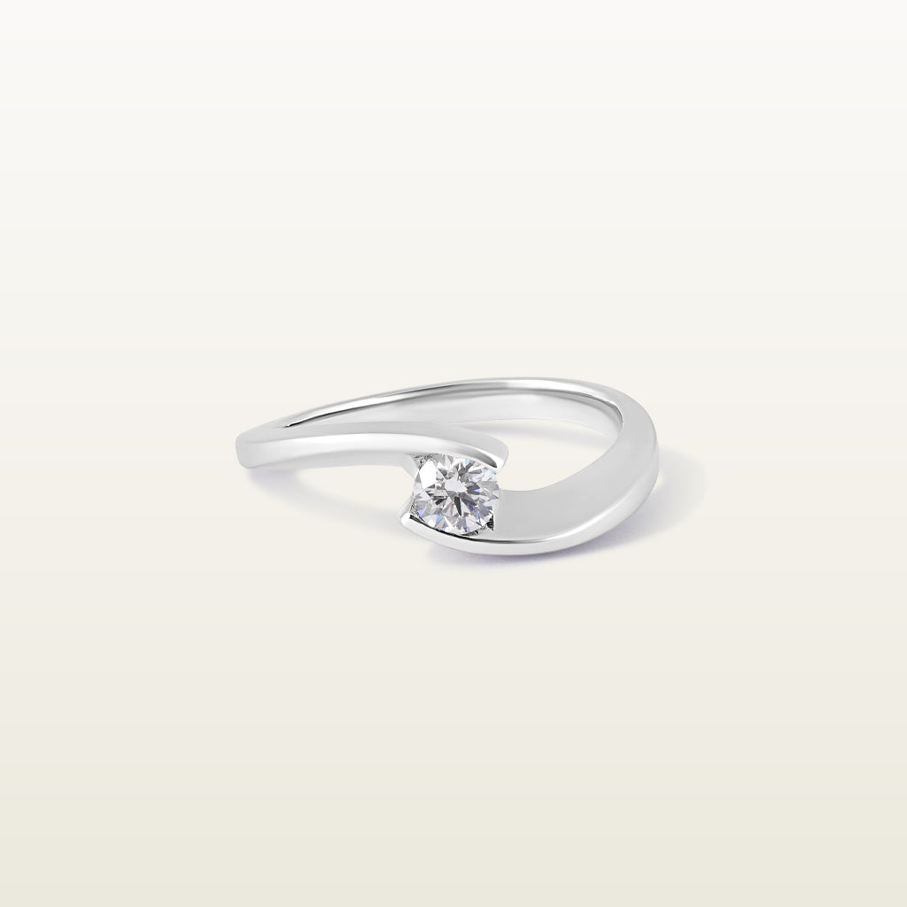 Anillo de compromiso Solitario, en oro blanco 18 kt con un diamante natural corte Brillante Redondo (Round Brilliant Cut) de 0.18 ct.