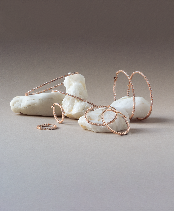 - Argollas en oro rosado 18 Kilates 18Kt/18K con pavé de circones
