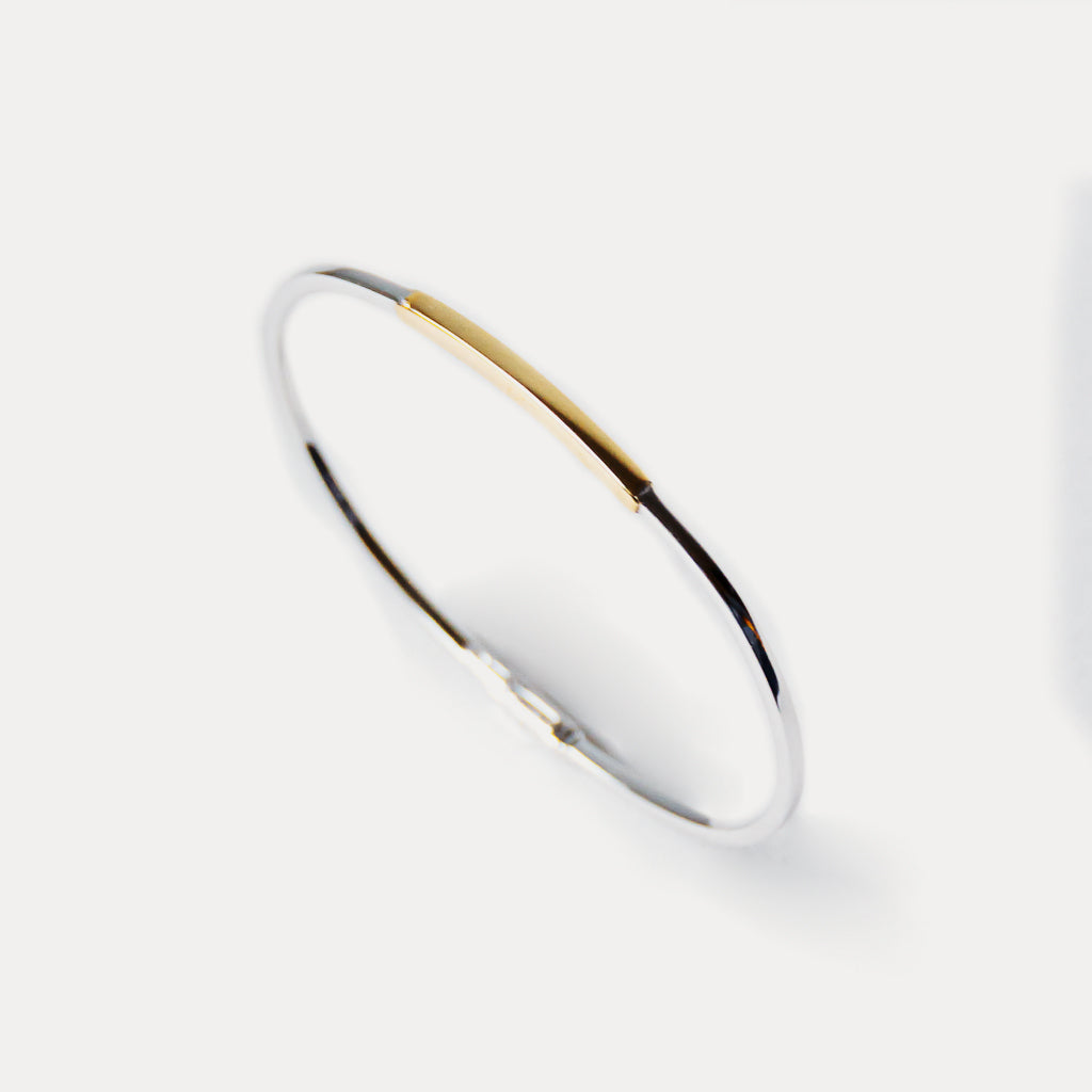 Brazalete rígido en oro blanco con placa en oro amarillo