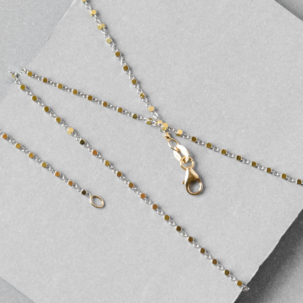 Cadena 45 cm eslabones alternos oro amarillo y blanco