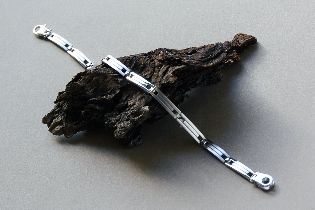 - Pulsera tejido italiano en oro blanco 18 Kilates 18Kt/18K con eslabones planos pulidos y satinados