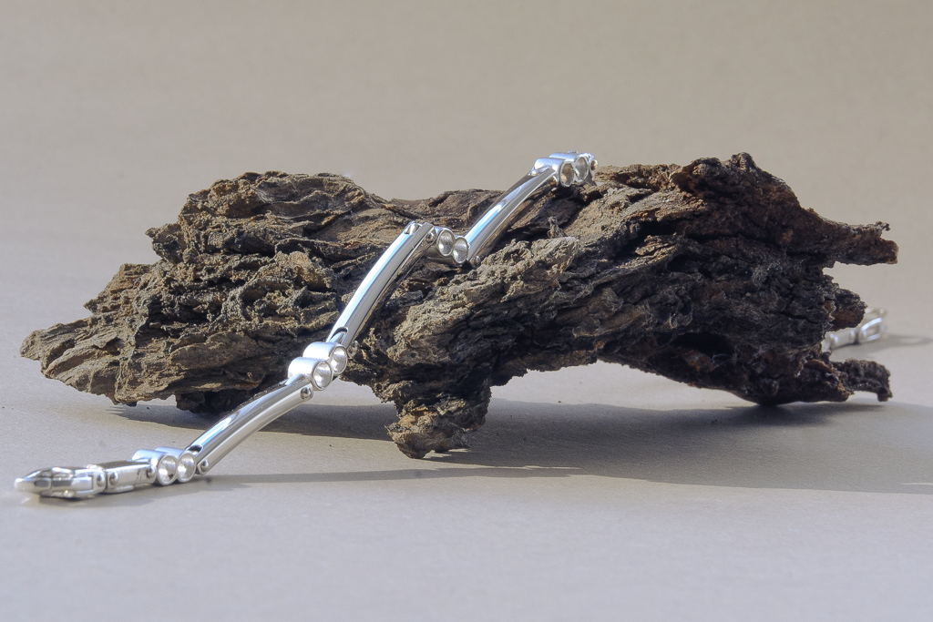 Pulsera tejido italiano en oro blanco de eslabones articulados planos pulidos
