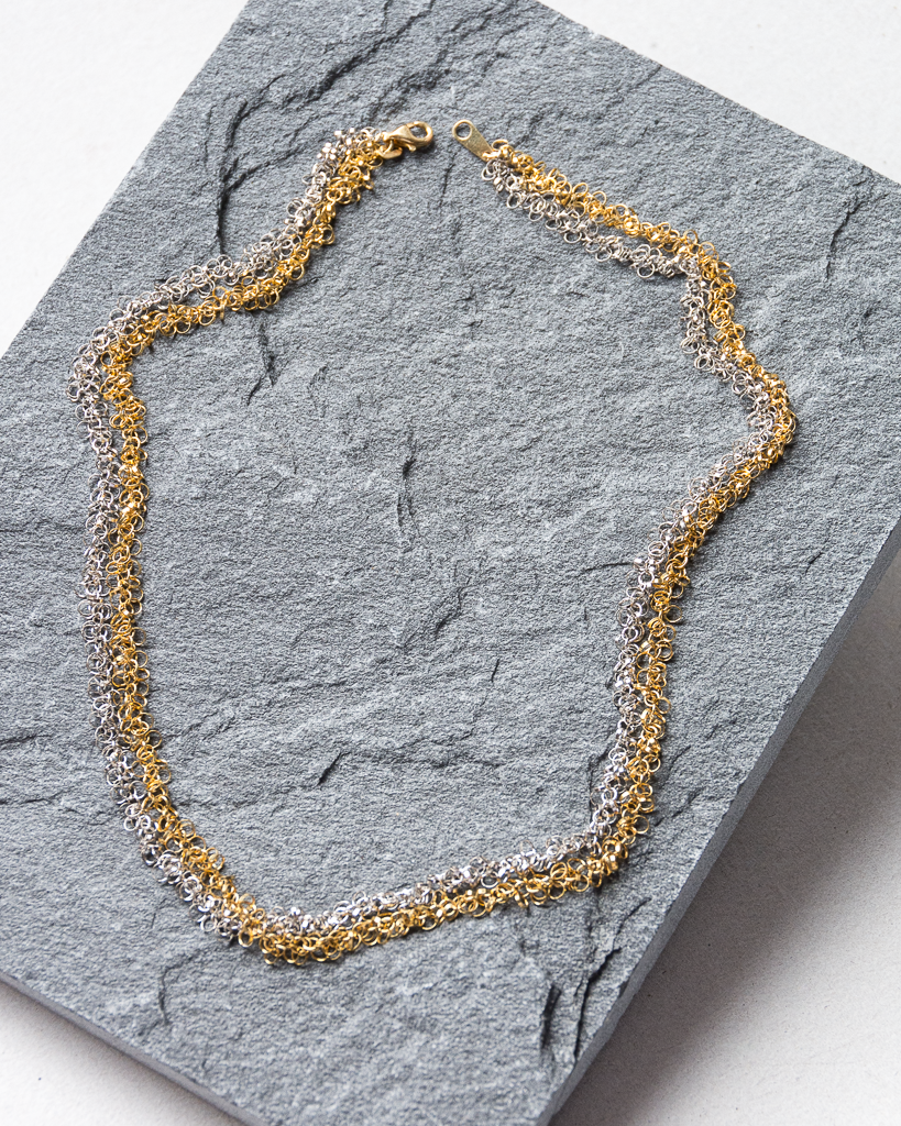 • Gargantilla doble fila en dos tonos de oro, amarillo y blanco  18 Kilates 18Kt/18K de eslabones mini argollas entrelazadas