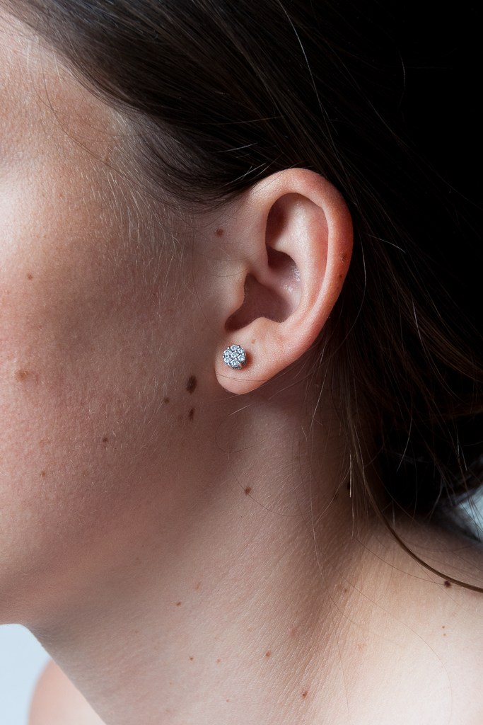 - Zarcillos stud en oro blanco 18 Kilates 18Kt/18K con pavé de circones