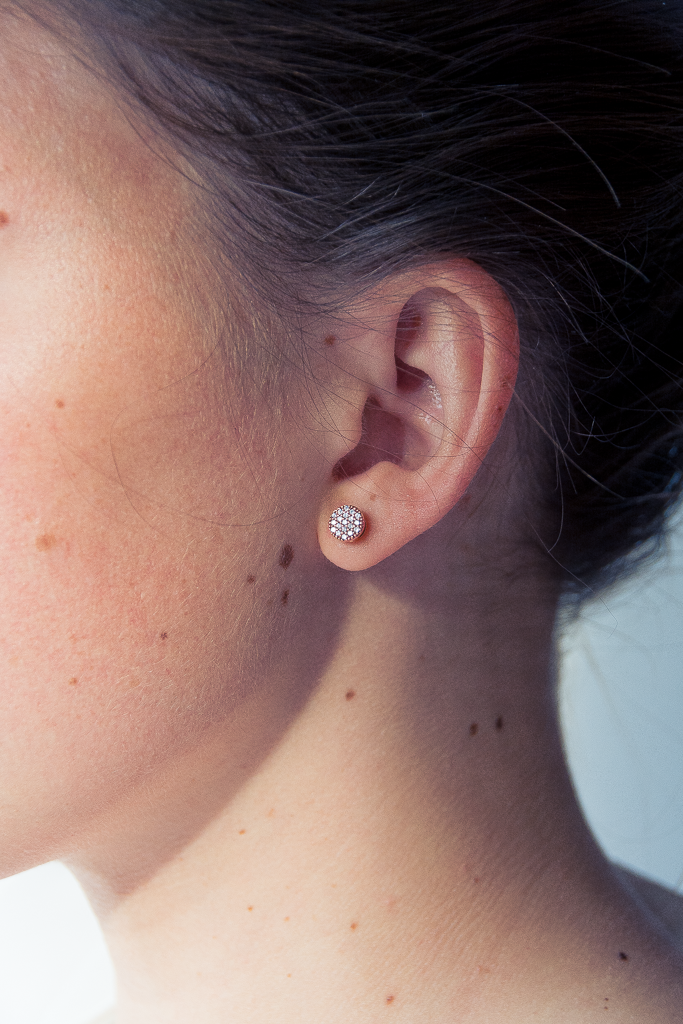 - Zarcillos stud en oro rosado 18 Kilates 18Kt/18K con pavé de circones
