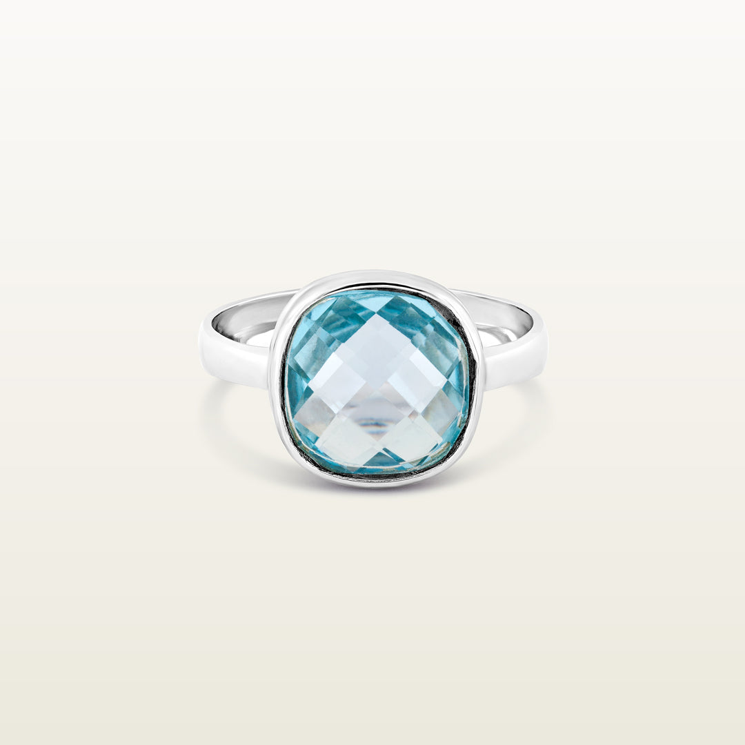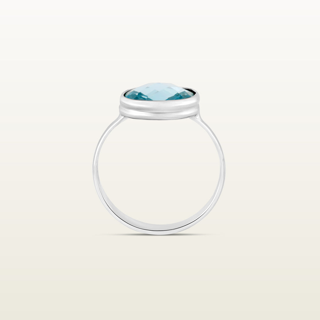 Anillo en oro blanco 18 kt con topacio azul facetado
