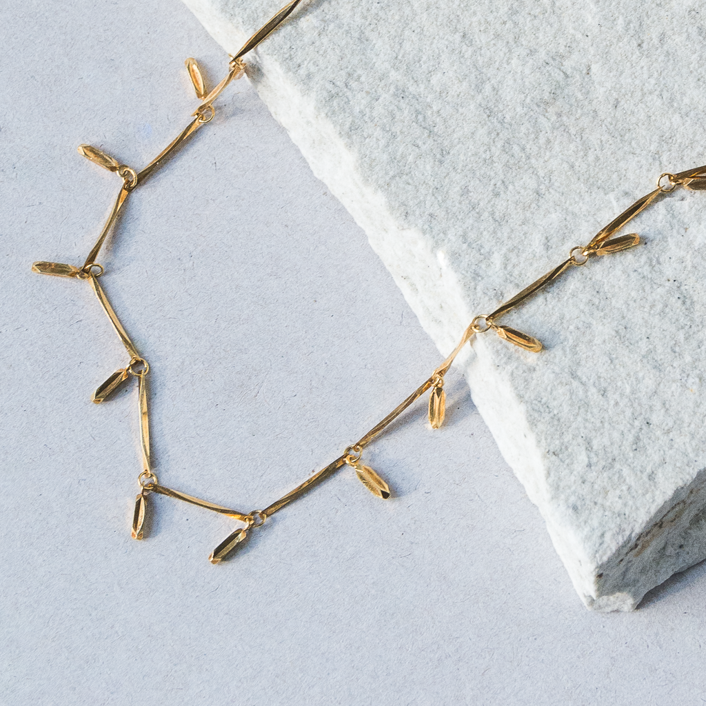 - Gargantilla en oro amarillo 18 Kilates 18Kt/18K de eslabones alargados y pequeñas hojas intercaladas