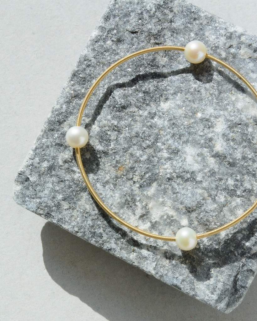 - Pulsera semirrígida guaya en oro amarillo 18 Kilates 18Kt/18K con tres perlas intercaladas