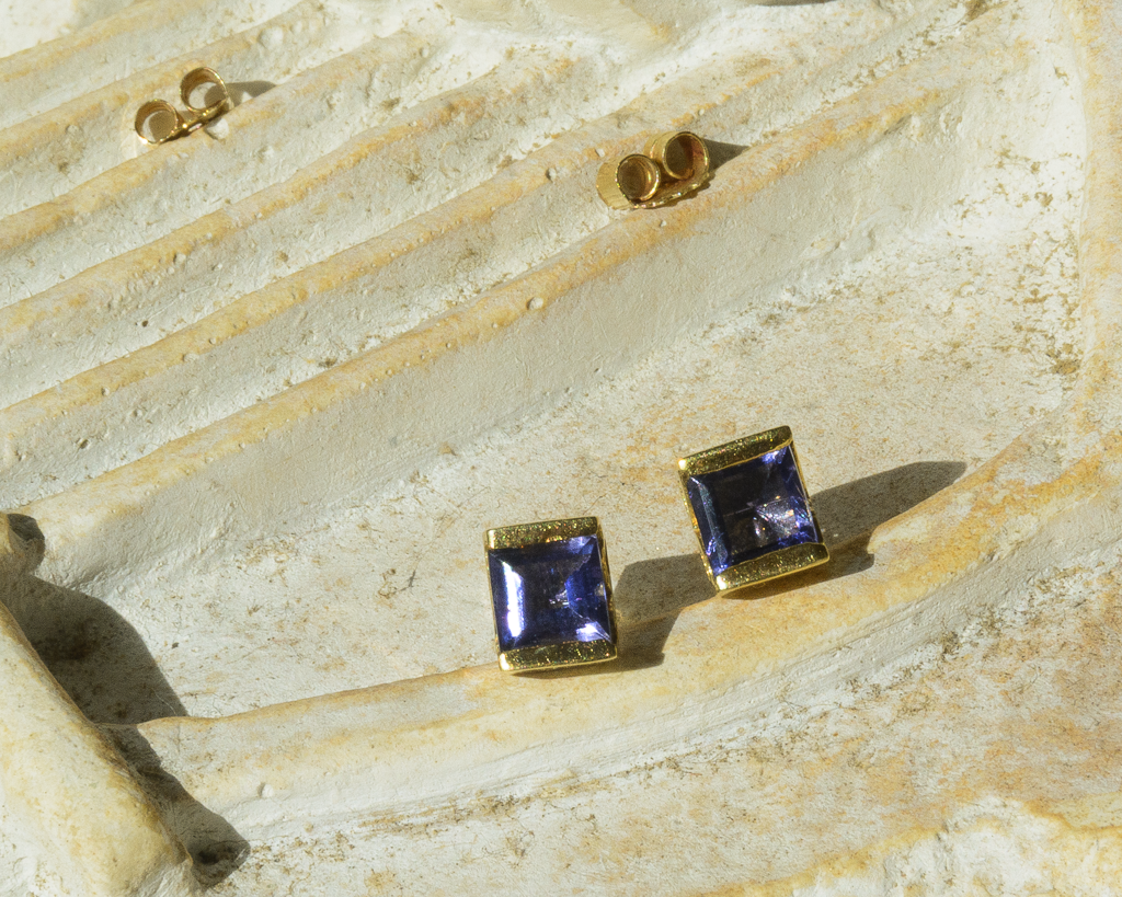 - Zarcillos stud en oro amarillo 18 Kilates 18Kt/18K con amatistas biseladas