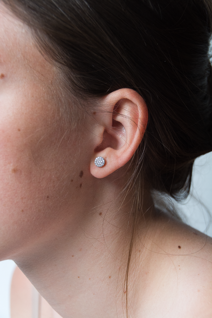 - Zarcillos stud en oro blanco 18 Kilates 18Kt/18K con pavé de circones
